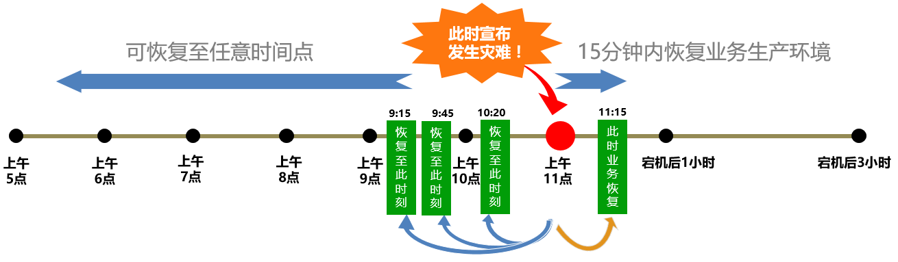 通過部署容災備份模塊,實現整機業(yè)務的備份與快速恢復,其數據和業(yè)務均可回退至指定時間點。并可在15分鐘內快速恢復業(yè)務,保障其業(yè)務連續(xù)性。