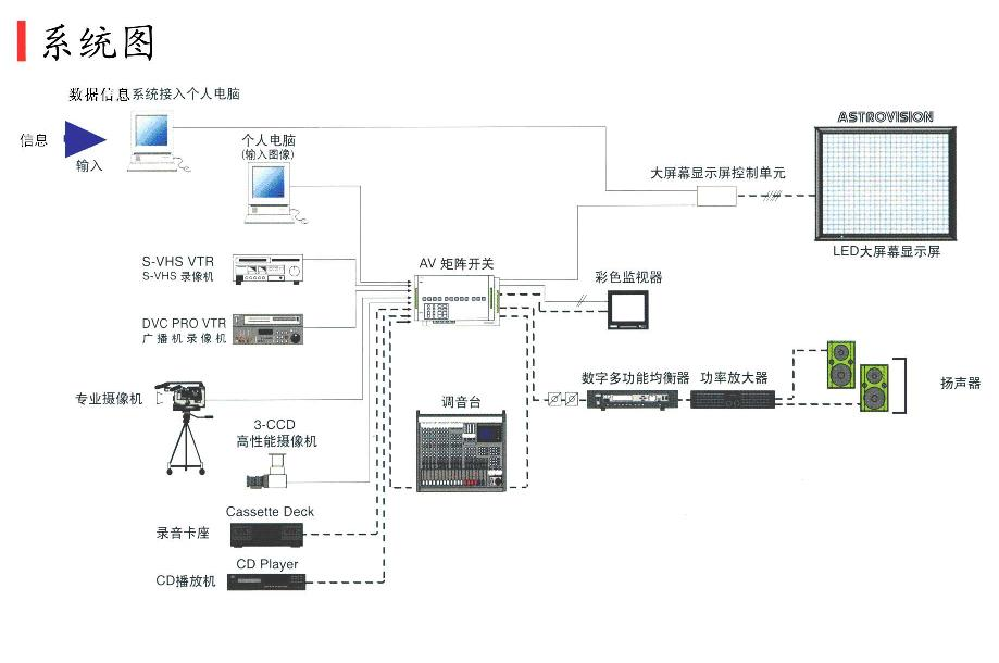 顯示系統(tǒng)、計算機網(wǎng)絡系統(tǒng)、配電控制系統(tǒng)、LED控制機、系統(tǒng)軟件等幾部分組成。